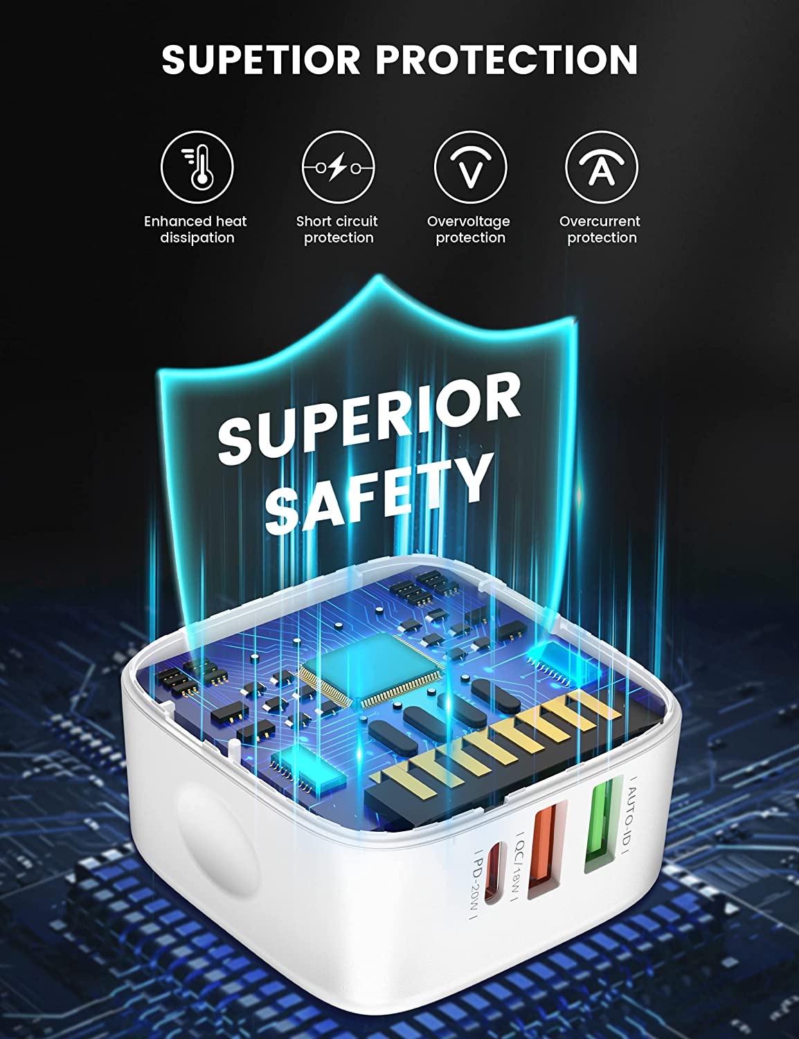 • إذا كانت 3 منافذ تعمل في وقت واحد ، فلا يمكنها دعم الشحن السريع ، فقط PD 20W أو QC 18W