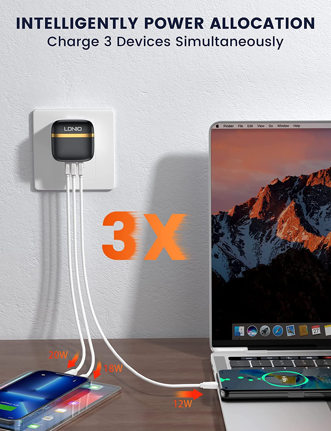 شاحن LDNIO السريع QC3.0 + 20W PD USB-C + كابل من النوع C.