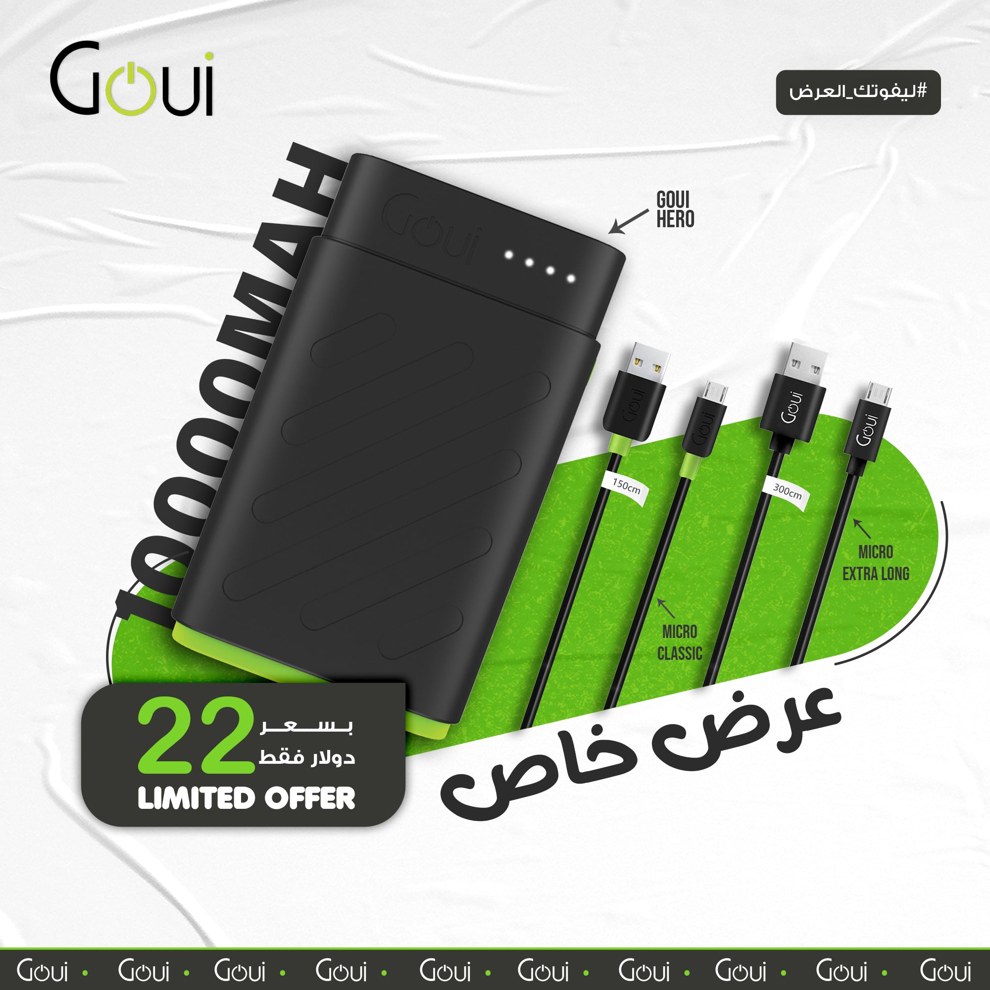 Regular price 34,000 IQDSale price 34,000 IQD Regular priceUnit price per34,000 IQDSale Sold outGoui - Hero 10.000 mAh Power Bank 20W This 3 USB power battery does exactly what it should; help to keep your gadgets are always fully...